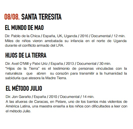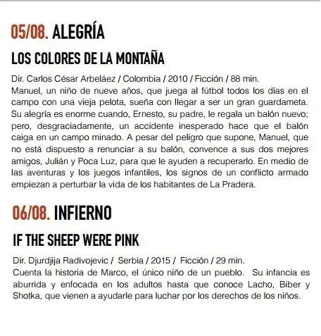 El evento se inaugurará el lunes 1 de agosto en Pueblo Viejo a las 6:30 de la tarde, con la película El Abrazo de la Serpiente, ganadora del premio Cannes 2015. Todas las películas se presentarán a esa hora, según se informó. Este es el cronograma:
