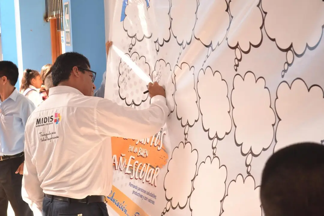 Luego de una breve homilía religiosa, las autoridades suscribieron sus “Compromisos con la Educación de Madre de Dios” la misma que involucra a las instituciones para el cumplimiento de acciones que ayuden a mejorar la educación de niños, niñas y jóvenes estudiantes.