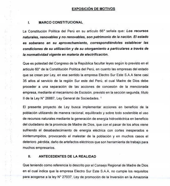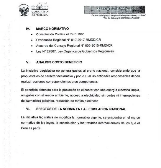 El Área de tramite documentario, recibió el proyecto 2964/2017-CR, que señala que el propósito de la ley es el afianzamiento del sistema y seguridad energética, la cual genera cortes inesperados, malestar y deterioro o perdida de artefactos eléctricos.