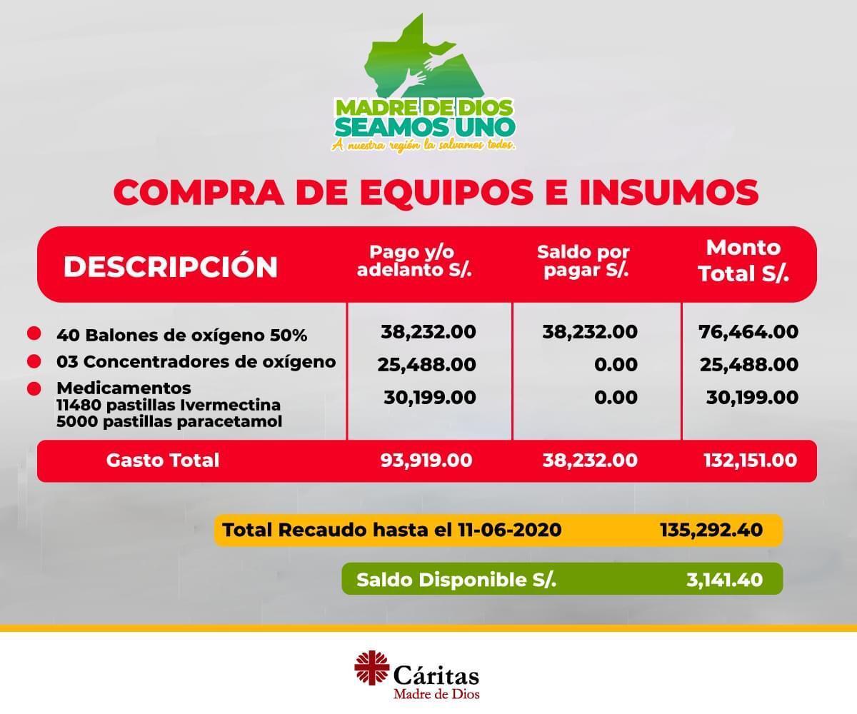 mil soles de los cuales han comprado medicinas, balones y concentradores de