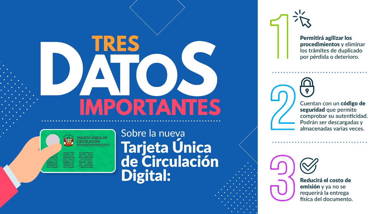 El Ministerio de Transportes y Comunicaciones (MTC) ha sido autorizado para emitir dicho documento que tendrá la misma validez que la Tarjeta Única de Circulación expedida por medios físicos.