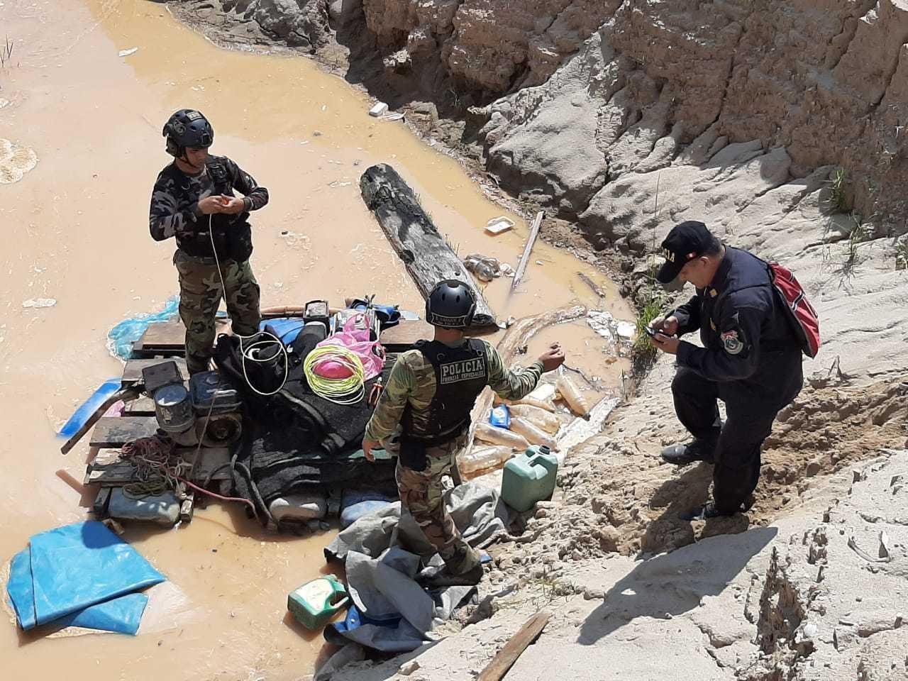 metros que servía para extraer el ilegal mineral. A los alrededores se encontró