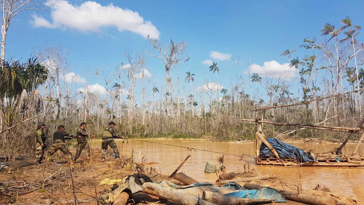 En el marco del operativo “Mercurio 2019”, la Fiscalía Especializada en Materia Ambiental (FEMA) de Madre de Dios, la Dirección de Medio Ambiente de la Policía Nacional del Perú y el Ejército Peruano asestaron un duro golpe a la minería ilegal en La Pampa, luego de encontrar dos motores, cinco galones de combustible, balsas, entre otros implementos que son utilizados para deforestar la Zona de Amortiguamiento de la Reserva Nacional de Tambopata.